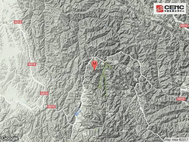 据中国地震台网正式测定,8月8日21时19分在四川阿坝州九寨沟县发生7.0级地震,震源深度20千米,震中位于北纬33.20度,东经103.82度。