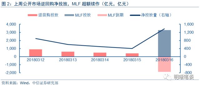 上周公开市场MLF超额续作,本次跟随加息信号很可能通过逆回购利率来释放。上周(3月12日至3月16日)央行公开市场操作共投放3775亿元,其中逆回购净投放2400亿元,此外周五超额续作1年前MLF,操作利率均保持不变。我们认为,从公开市场操作工具组合来说,央行可能将通过OMO逆回购利率操作体现政策信号。在稳增长和去杠杆目标保持不变的背景下,央行可能将延续放量和加价的“量价分离”的政策组合,加息当日通过逆回购操作净投放基础货币。在2017年两次上调公开市场利率时,央行之所以通过提高MLF利率体现这一信号,主要原因可能是MLF到期与加息节点一致的缘故,加息信号并非一定要通过MLF利率调整来体现。本次MLF到期时间相对较早,从央行方面考虑无需推迟至本周再加息续作MLF,而美联储加息时间距下一次MLF到期尚早,因此中国加息的政策信号很可能只通过逆回购利率的调整来释放,而MLF利率可能在下一次续作时进行补调。