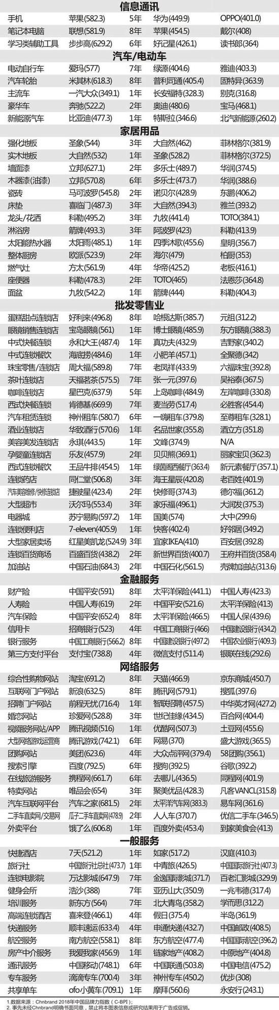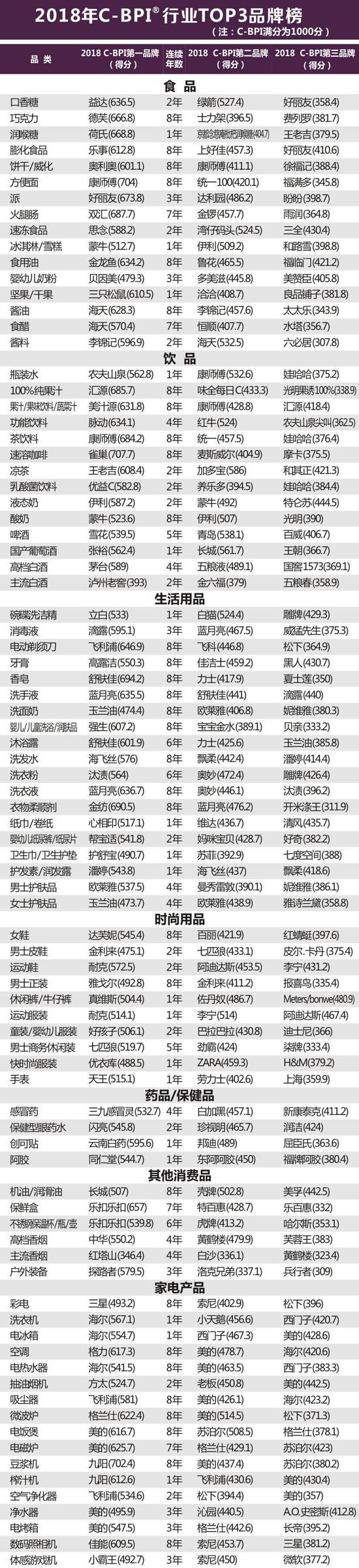 据悉,中国品牌力指数是由中国领先的品牌评级与品牌顾问机构Chnbrand实施的中国首个品牌价值评价制度,2011年首次推出并连续数年获得了工业和信息化部品牌政策专项资金的扶持。2018年C-BPI调查区域覆盖全国40个城市,调查对象为15岁到64岁之间的常住居民,并根据性别、年龄、收入进行随机抽样,总样本数量为2666430个,采用入户面访的调查方式完成,调查覆盖159个细分行业,涉及被评价主流品牌7800余个。