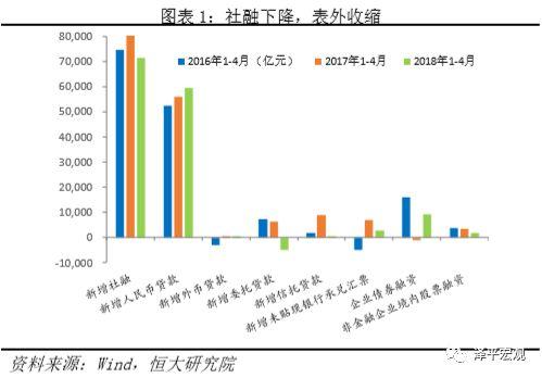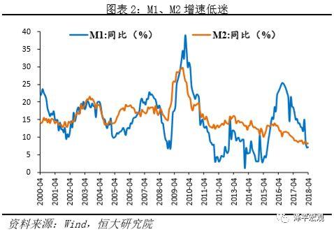 2018年1-4月社会融资总量累计71400亿元,比去年同期下降11579亿元,为2014年同期以来的新低,其中,新增信托贷款、委托贷款分别为664、-4795亿元,比去年同期大幅下降8158、11094亿元;4月广义货币供应量M2同比8.3%,处于历史低点。