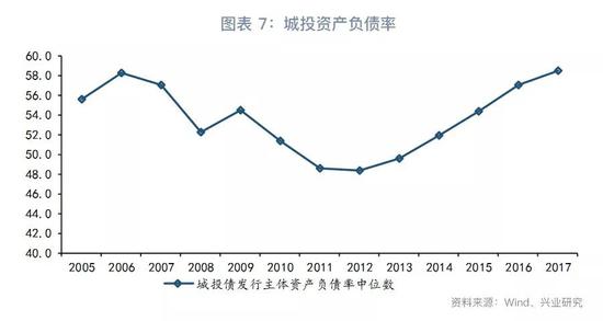 第一,结构性去杠杆的影响。5月11日,中央全面深化改革委员会第二次会议审议通过了《关于加强国有企业资产负债约束的指导意见》。根据国资委,国有工业企业资产负债率预警线为65%,重点监管线为70%;国有非工业企业资产负债率预警线为70%,重点监管线为75%;国有科研技术企业资产负债率预警线为60%,重点监管线为65%;国有企业集团合并报表资产负债率预警线为65%,重点监管线为70%。比照这种标准,与基建关系比较密切的城投应属于非工业企业,适用75%的监管线。城投的资产负债率中位数自2012年以来持续上升,2017年末为58.4%。在9858支城投债中,有538只债券的主体资产负债率在75%以上,占全部城投债的5.5%。由此来看,城投似乎可以不受资产负债率监管红线的约束。不过,在结构性去杠杆的大背景下,逆势举债加杠杆也不是明智之举。目前整个信用债市场融资环境的恶化客观上也不支持城投继续加杠杆。