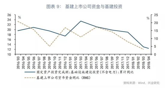 此外,从上市公司数据看,今年下半年基建投资亦难反弹。基建类上市公司的货币资金增速领先基建投资增速,自2017年下半年以来,基建上市公司货币资金增速持续回落,这意味着基建投资前景或仍将黯淡。