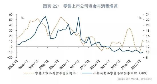 总的来看,下半年消费增速或比较稳定,这也可以从上市公司层面得到印证。数据显示,零售上市公司的货币资金增速对于消费品零售增速有一定的领先性。今年第一季度零售上市公司货币资金同比增长13.5%,较去年年末的-8.4%出现明显反弹,折射出未来消费增长的潜力。