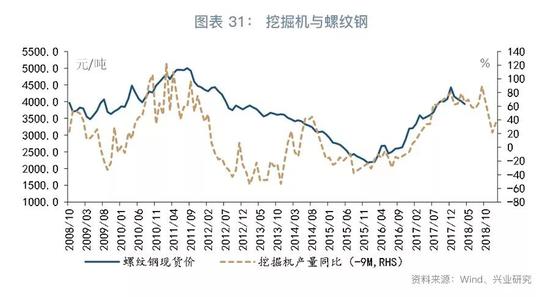 从钢材价格来看,需求平稳与供给收缩的矛盾是2017年钢材价格大幅攀升的主因,但这一矛盾在2018年发生了转变。需求方面,挖掘机产量是刻画建筑活动的重要指标,数据显示挖掘机产量对钢材价格也有一定的领先性。挖掘机产量指标显示,2018年前三季度钢材需求仍然相对平稳,但到2018年第四季度,钢材需求可能出现较为明显的回落。