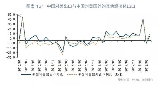 最后,从中美贸易战的角度看,2018年以来中美贸易战摇摆不停,成为影响中国出口最为不确定的因素。但较为确定的是,前期中美贸易战的影响下,企业提前出口行为将透支后期出口读数。在遭受美国301调查期间(2017年8月至今),中国对美国出口增速显著高于对其他经济体的出口;值得关注的是,2018年4月以来,中国对美国出口增速的相对优势弱化,这或是出口透支效应显现的信号。换言之,中国对美国出口订单提前透支,将拉低未来中国对美出口读数。