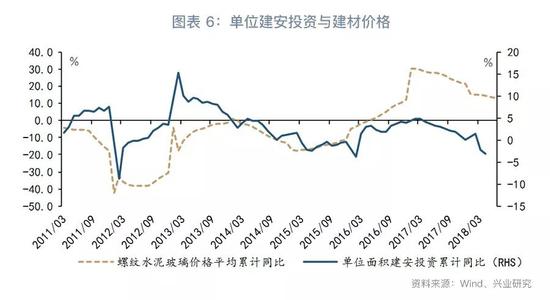单位施工面积的建安投资走势与建材价格关系密切。我们在下文将分析指出,今年下半年包括建材价格在内的工业品价格PPI涨幅将趋于回落,由此单位建安投资增速也可能放缓。