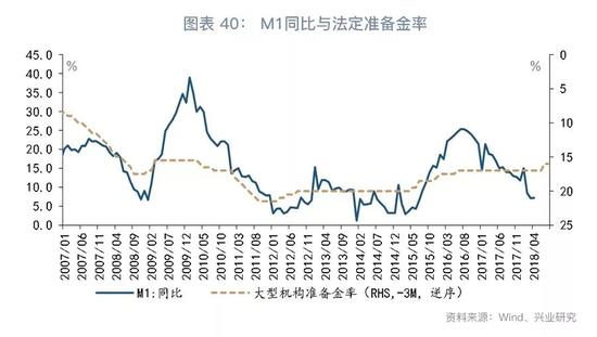 据此,我们估计年内或许仍有0.5至1.5个百分点的降准空间。历史数据显示,法定准备金率调整对M1增速有一定的领先性,因此,下半年M1同比有望出现回升。