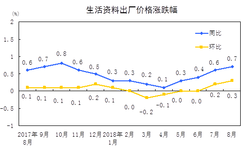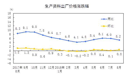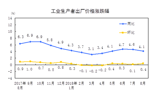 2018年8月份工业生产者出厂价格同比上涨4.1%