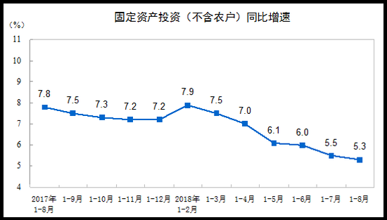 2018年1-8月份,全国固定资产投资(不含农户)415158亿元,同比增长5.3%,增速比1-7月份回落0.2个百分点,降幅比1-7月份的0.5个百分点收窄。从环比速度看,8月份固定资产投资(不含农户)增长0.44%。其中,民间固定资产投资259954亿元,同比增长8.7%。