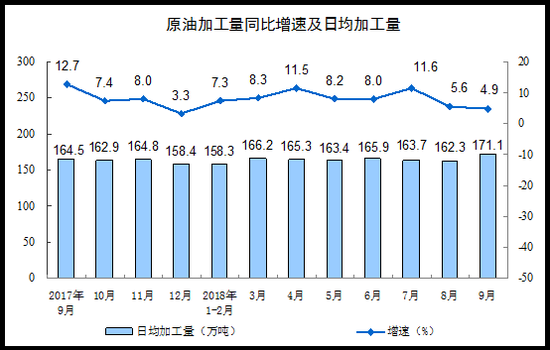 | 原油加工量(万吨) | 5134 | 4.9 | 45254 | 8.1 |